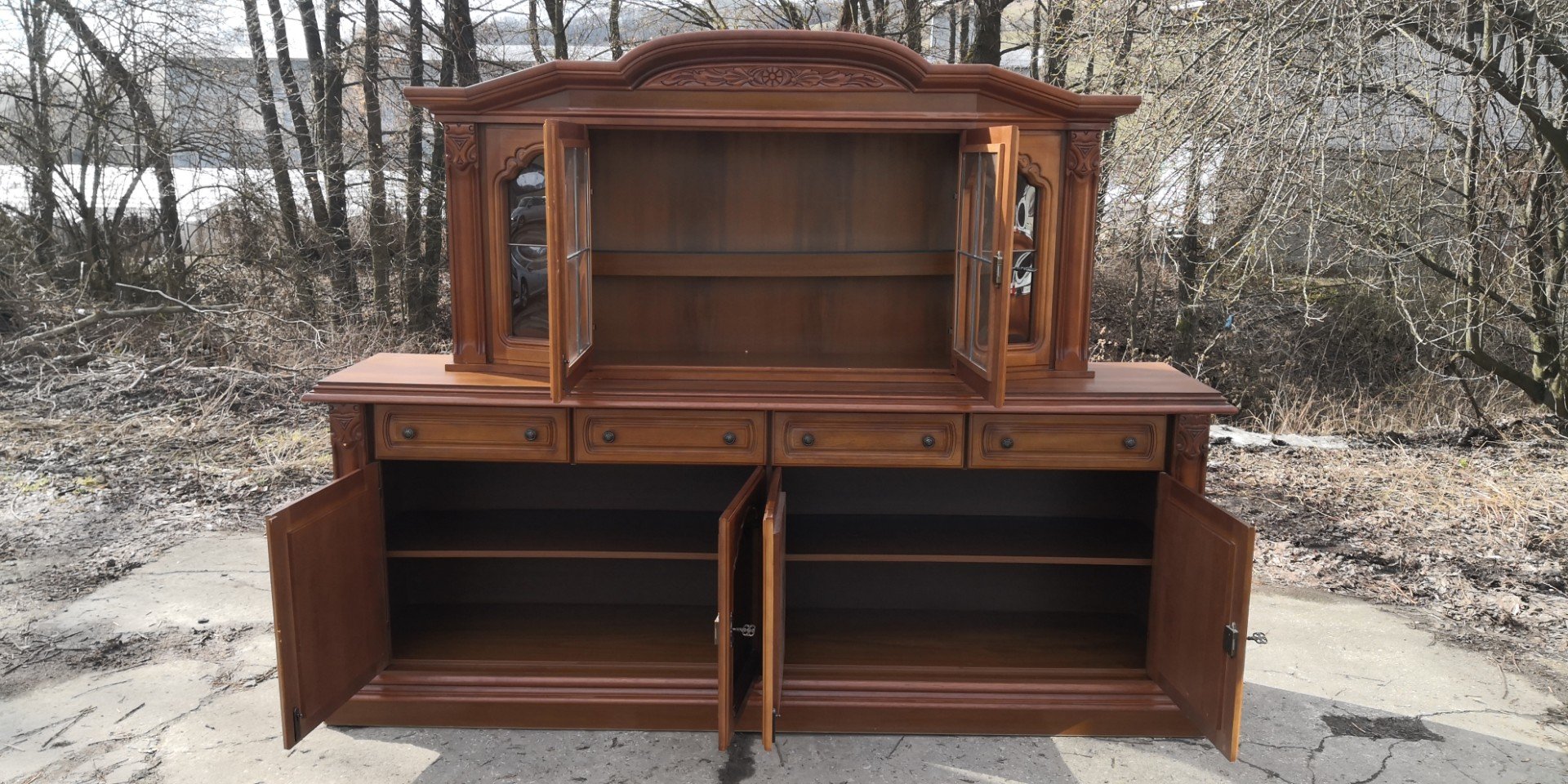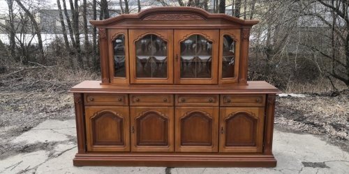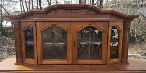 Rozměry: komoda: šířka-208cm,hloubka-48cm,výška-81cm,vitrínka:šířka-155cm,hloubka-40cm,výška-78cm.