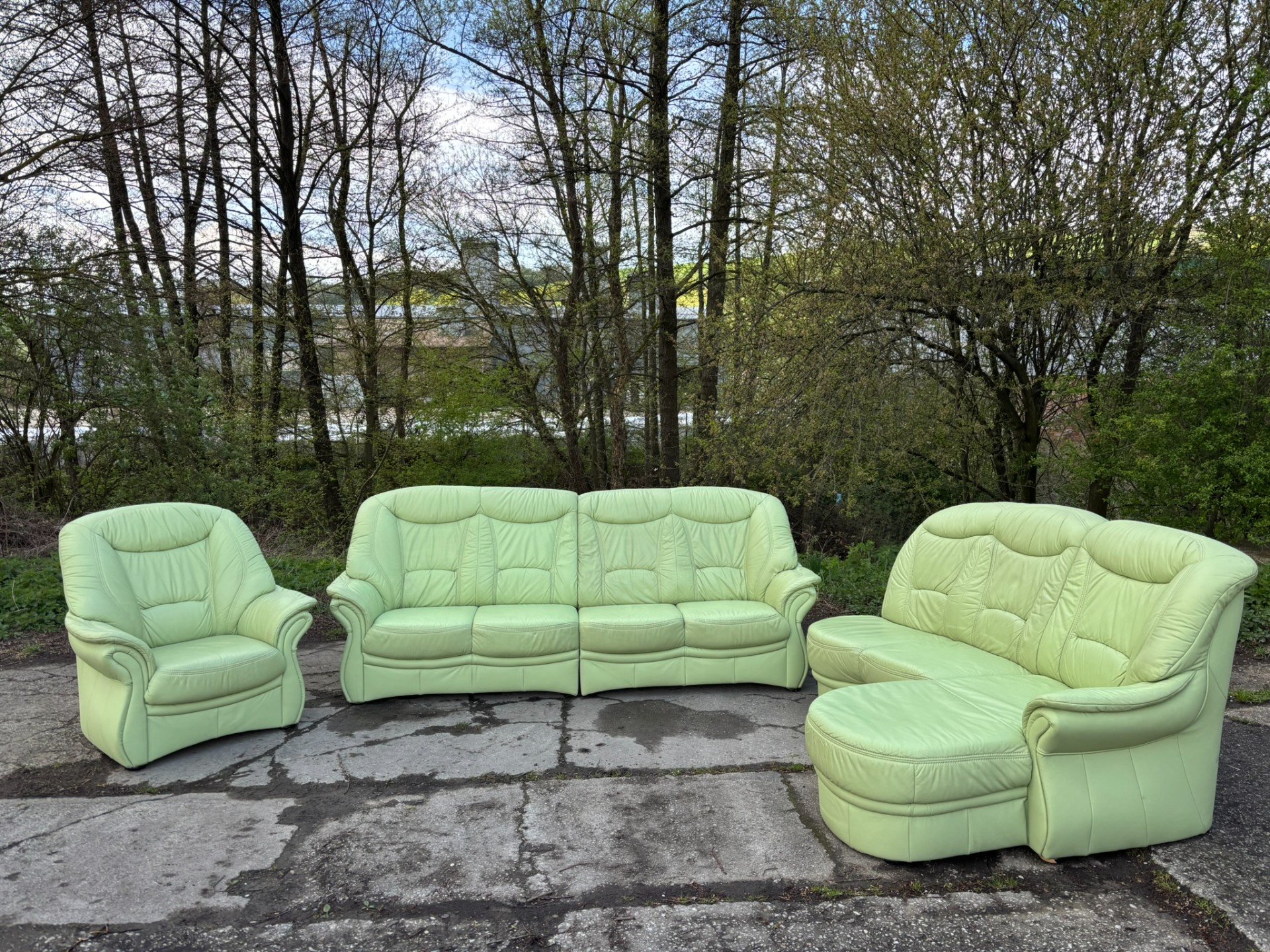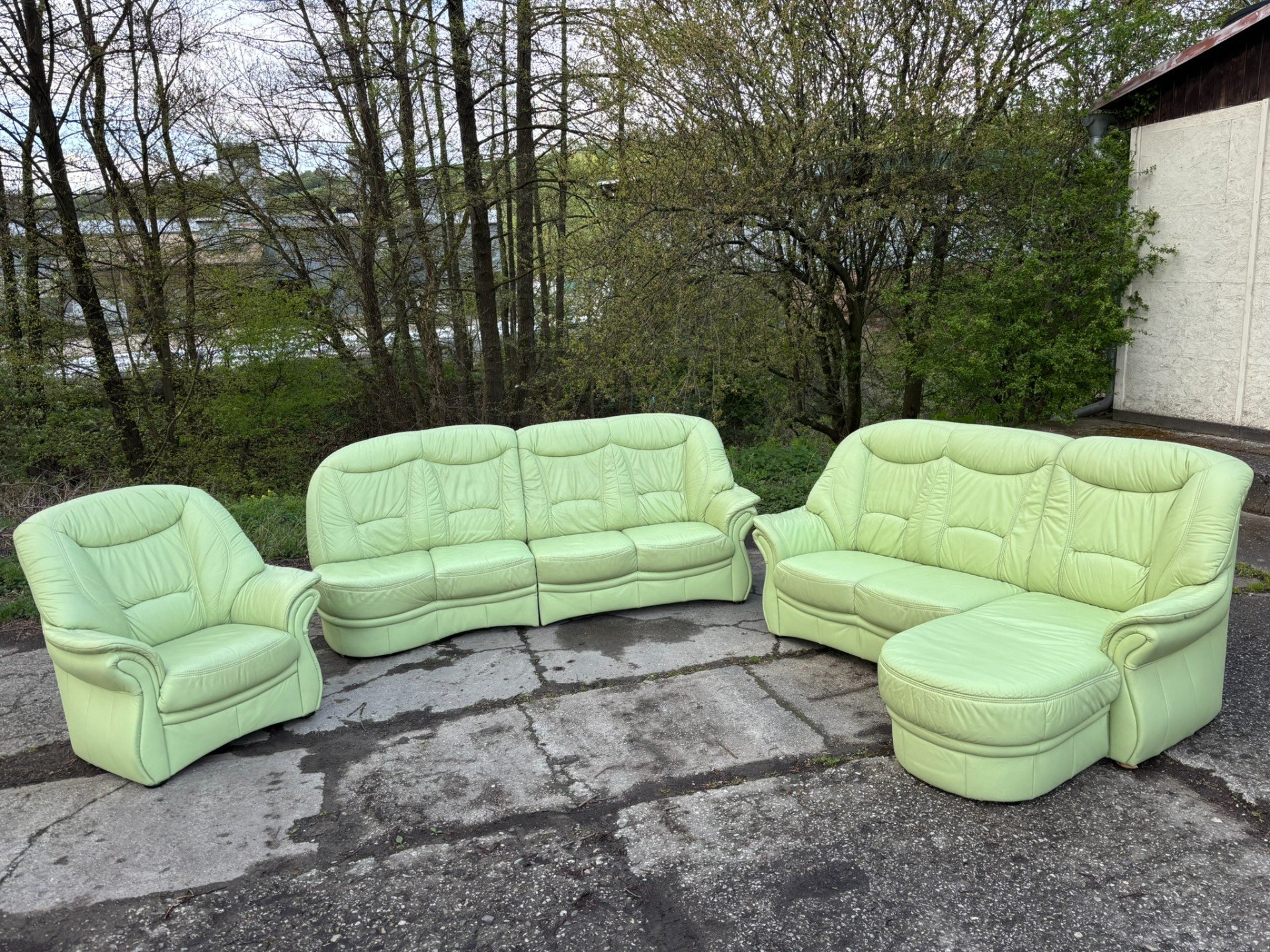 Rozměry: trojsedačka s opěrkou - 260cm,trojsedačka bez opěrky - 250cm,dvojsedačka - 200-210cm.,výška - 105cm. Sedačka je ve skutečnosti hezčí,než na fotce - velice pěkná barva. Dvojsedáky jdou přehodit!!!