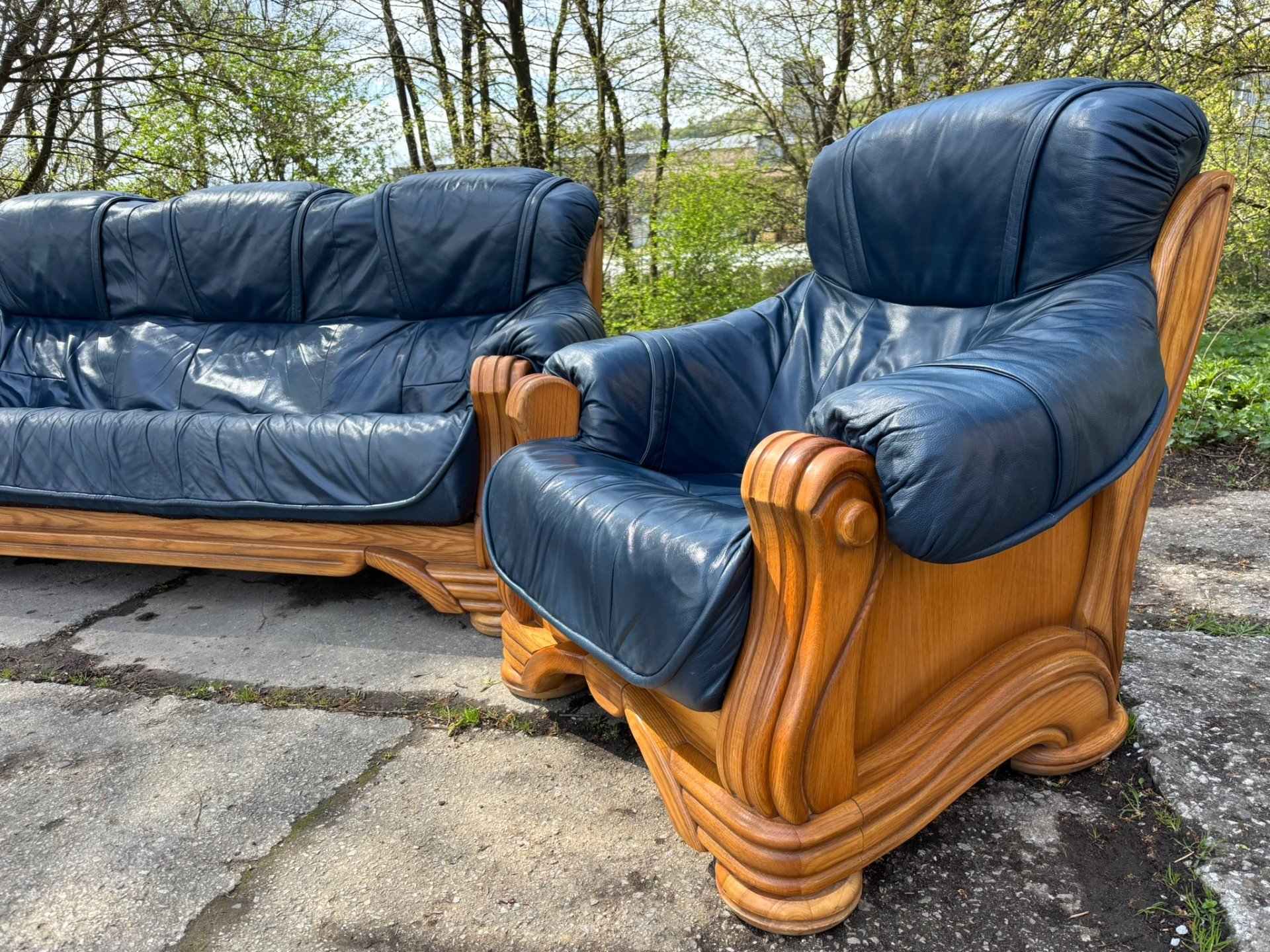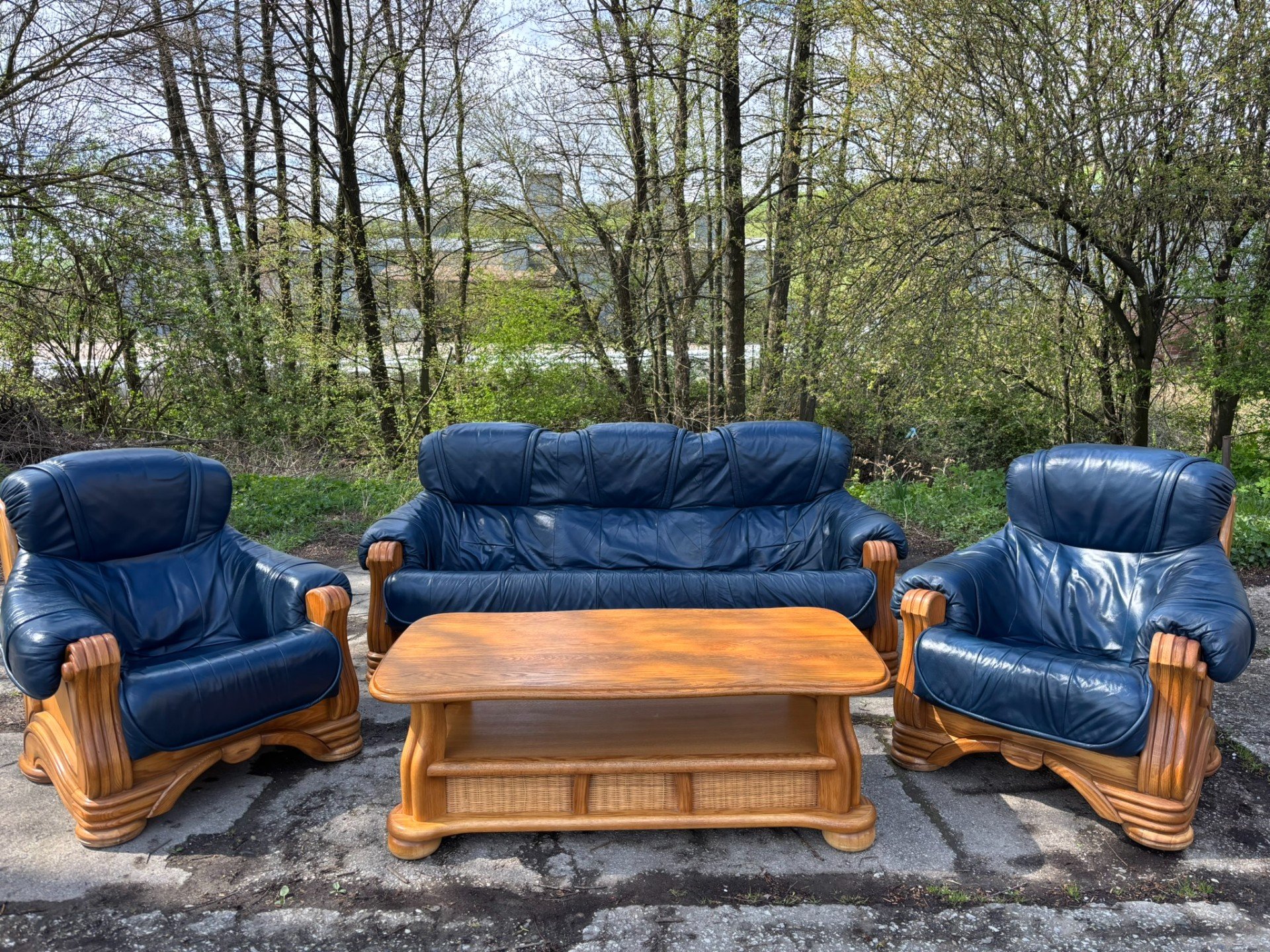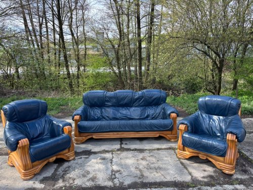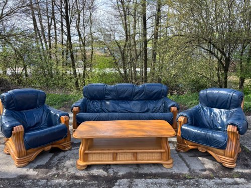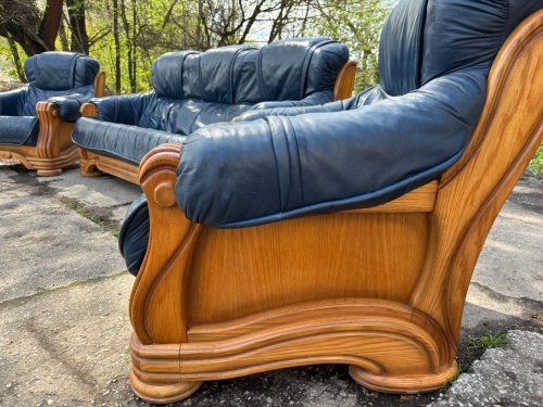Kožená sedací souprava s masivním dubovým dřevem TOP STAV!!!