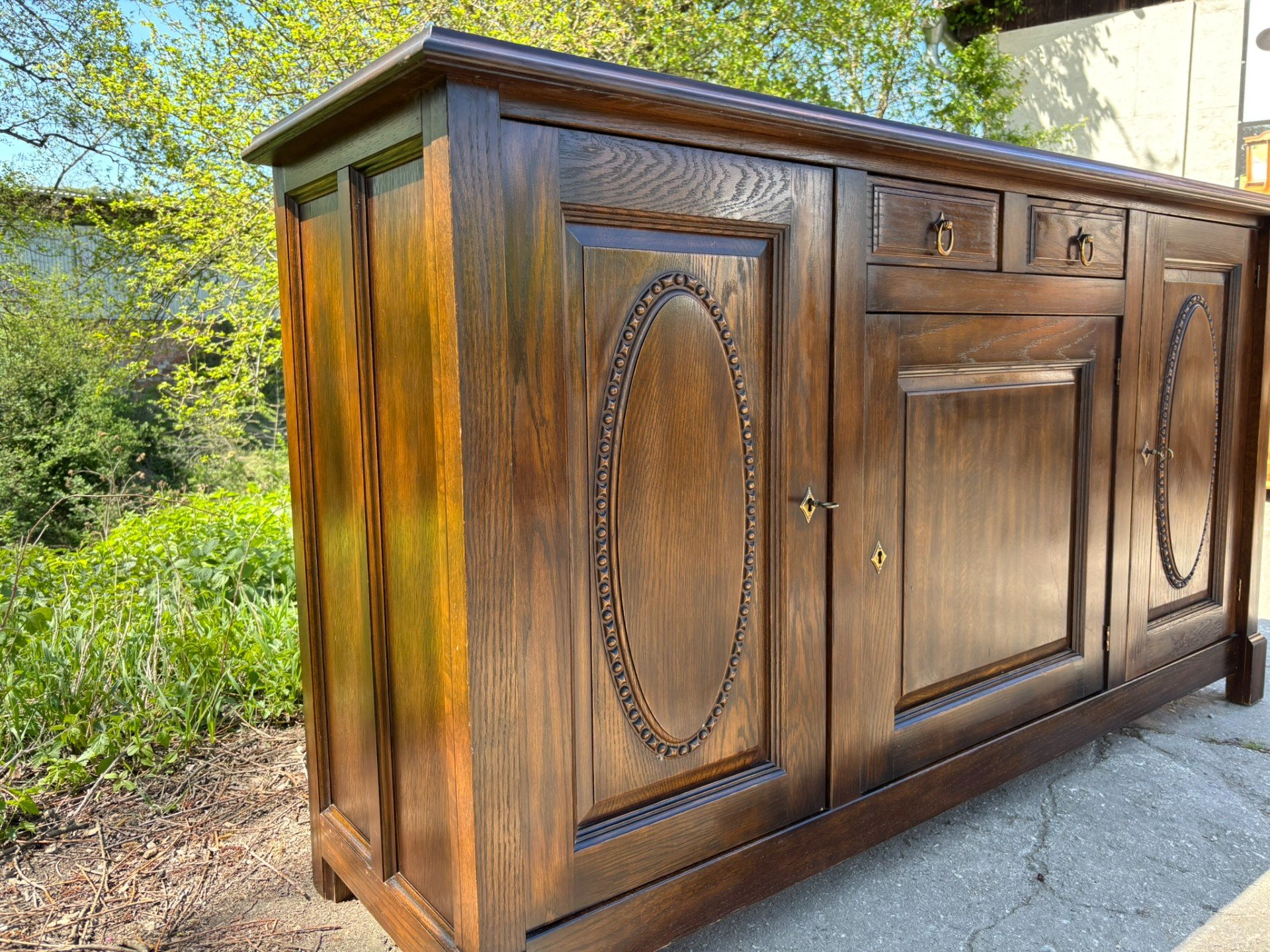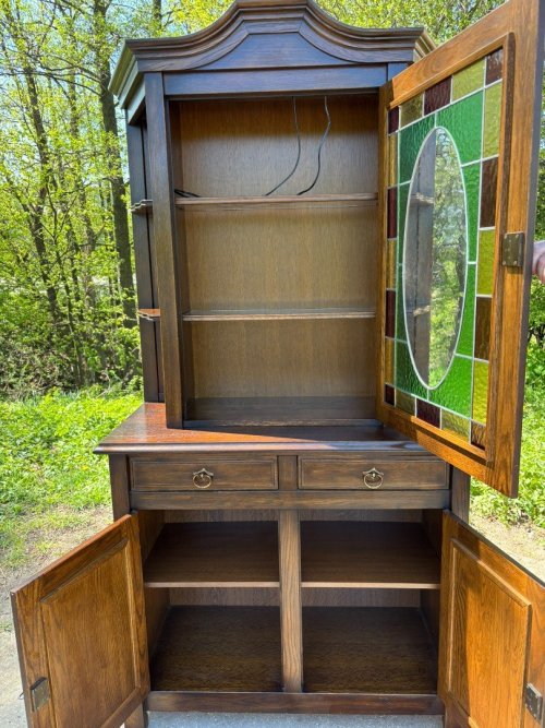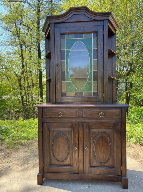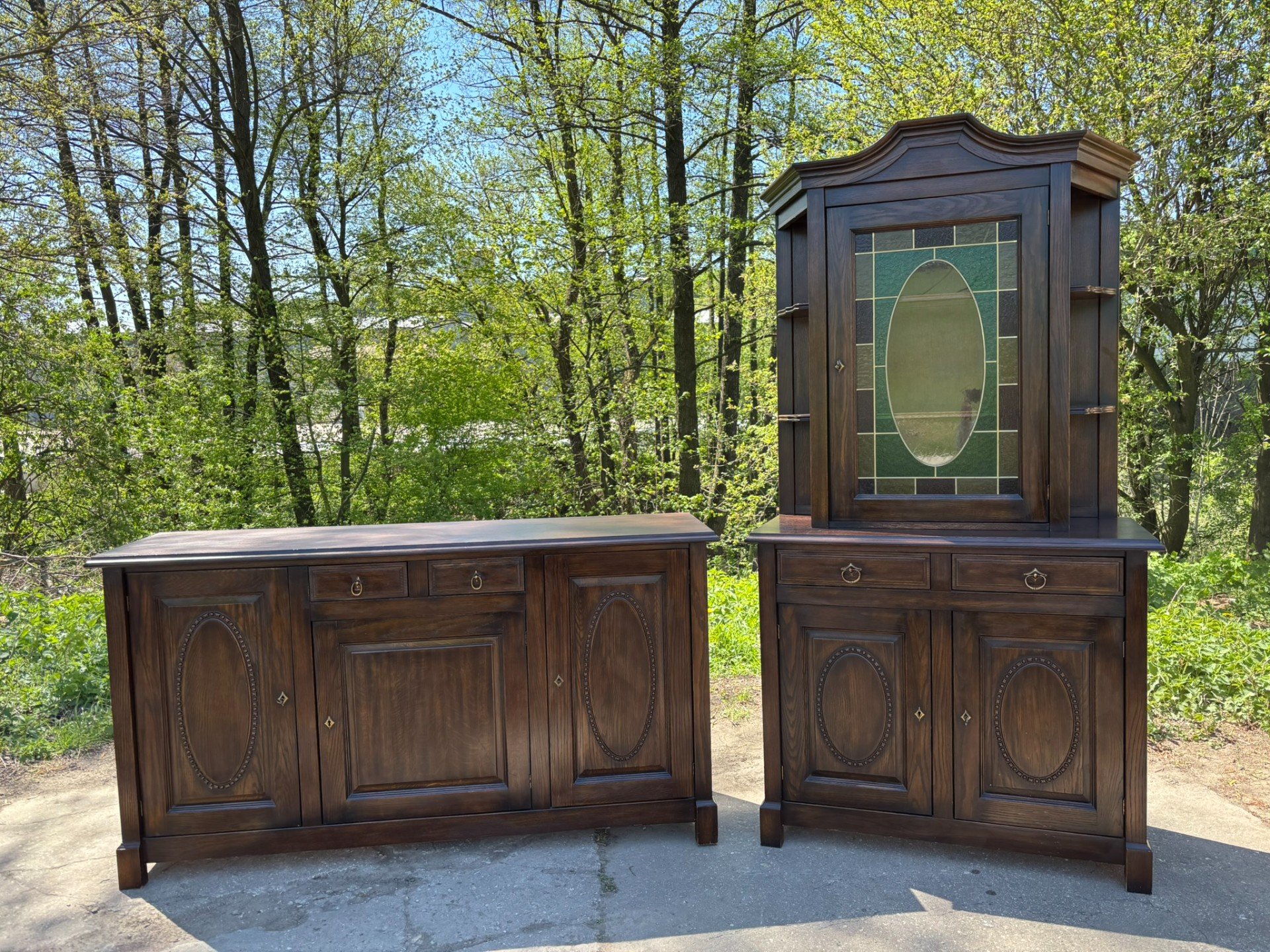 Masivní dlouhá komoda + masivní příborník s vitrážním sklem a s osvětlením - TOP STAV!!!