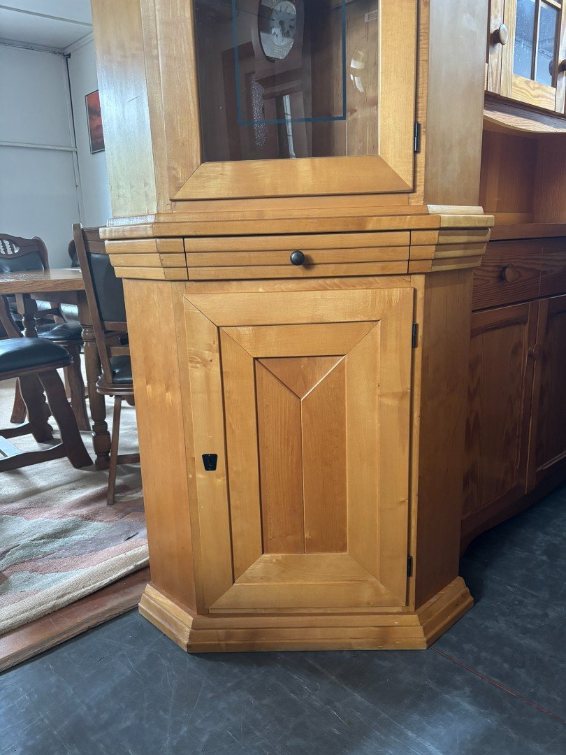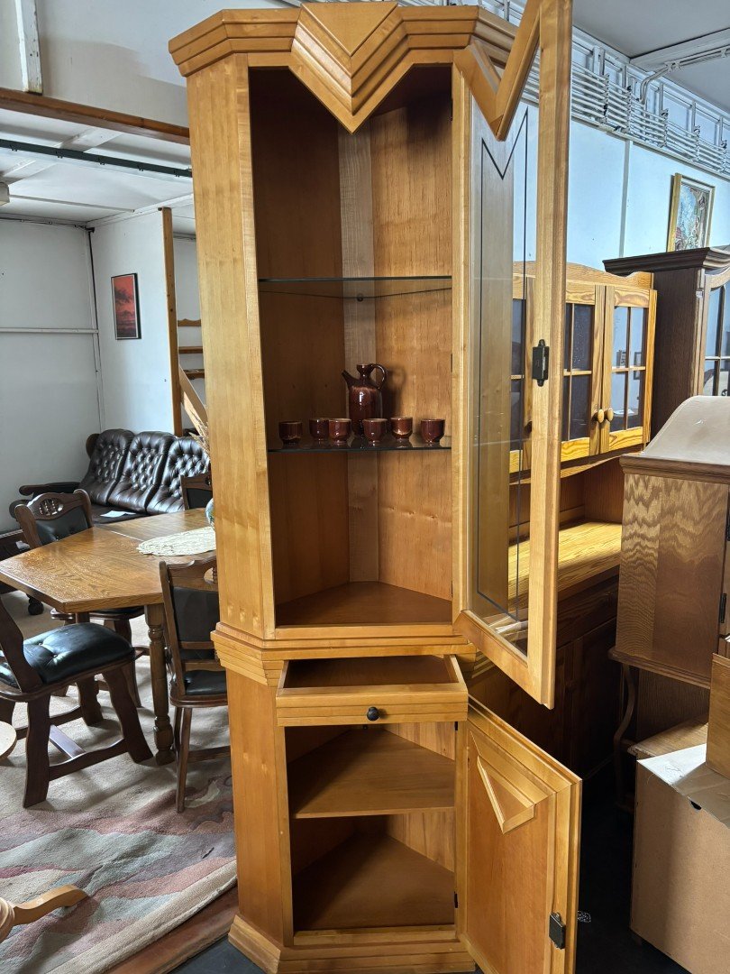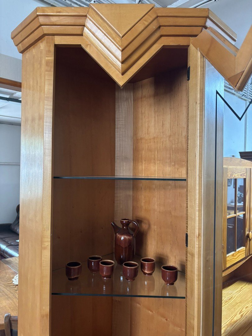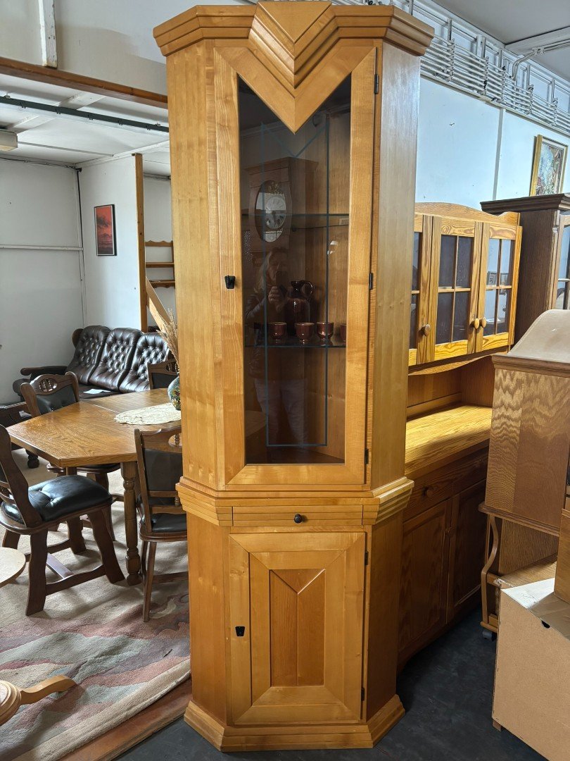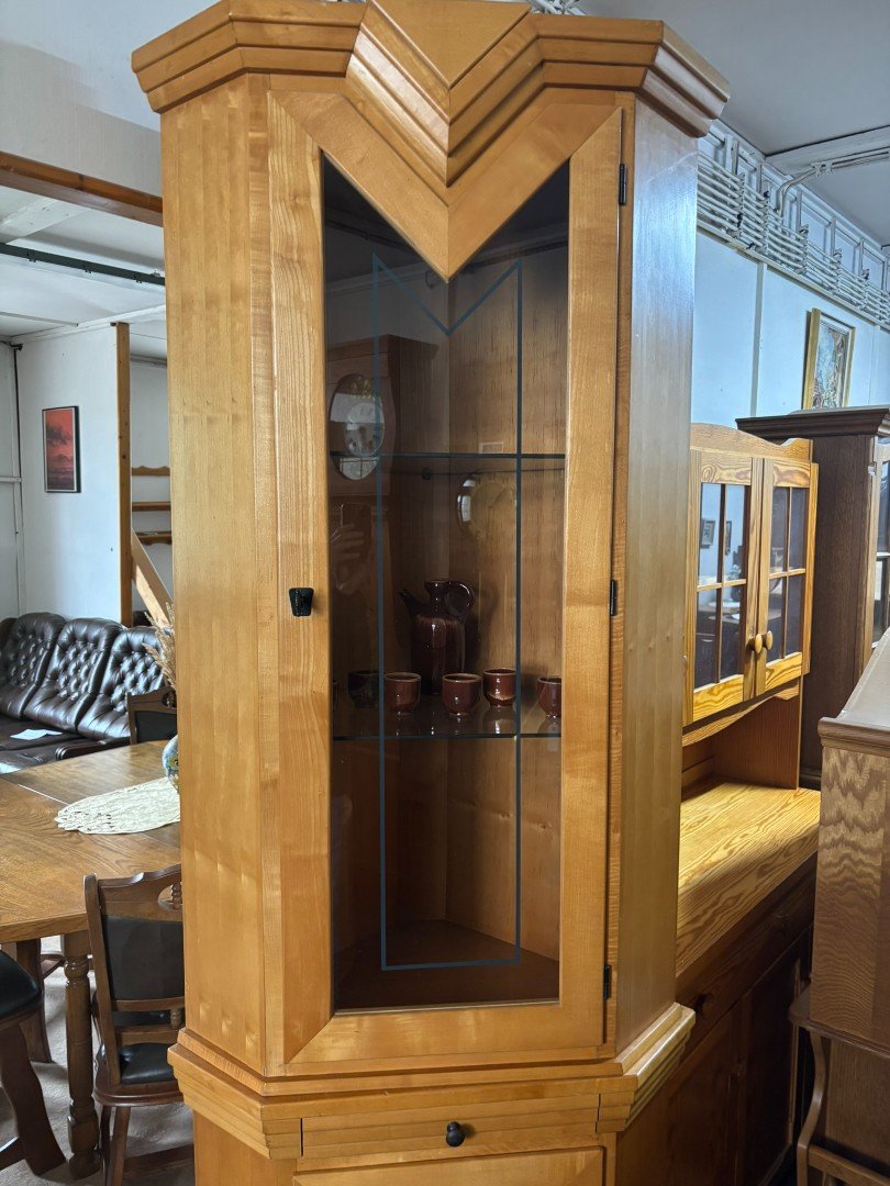 Masivní rohová vitrína