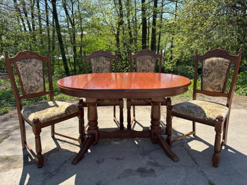 Masivní rozkládací stůl + 4x masivní židle - TOP STAV!!!
