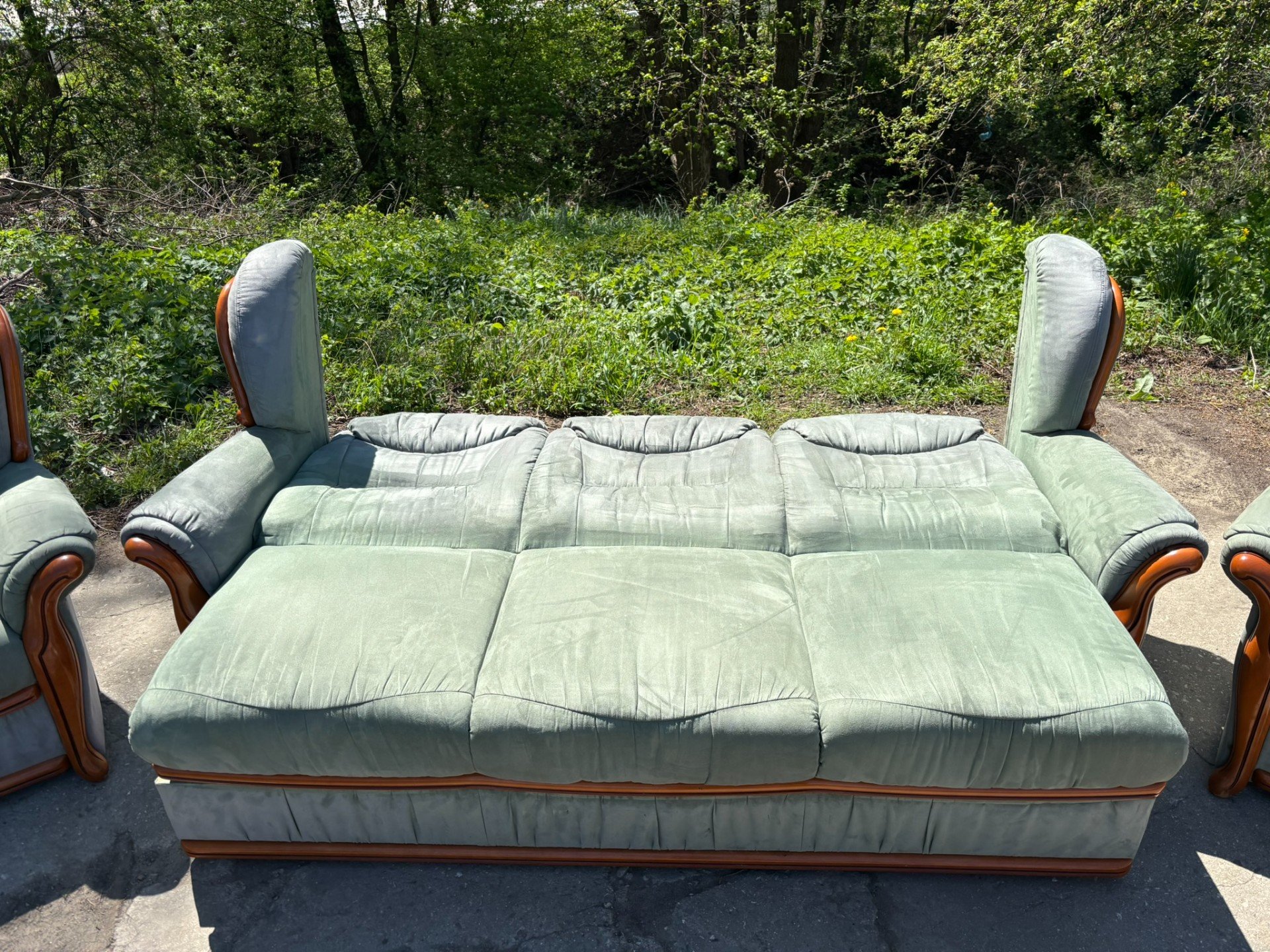Rozměry: trojsedačka-210cm,křeslo-86cm,výška-98cm,rozklad - 120x175cm.